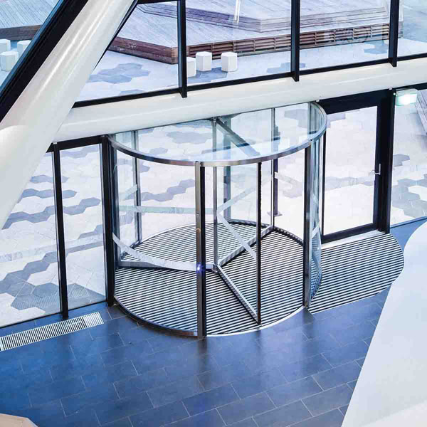 The KTV revolving door range is designed for installation in entrance areas where interior environmental control coupled with elegant aesthetics are desired.