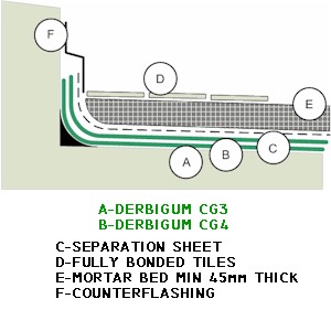 • Tiles on mortarbed on Derbigum CAD Drawing