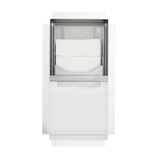 • Concealed paper towel dispenser and waste bin combination white