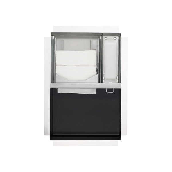 • Concealed paper towel and soap dispenser and waste bin combination