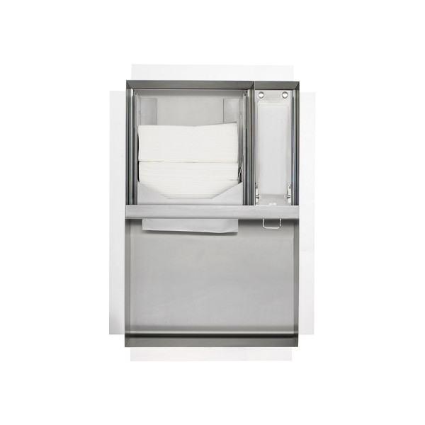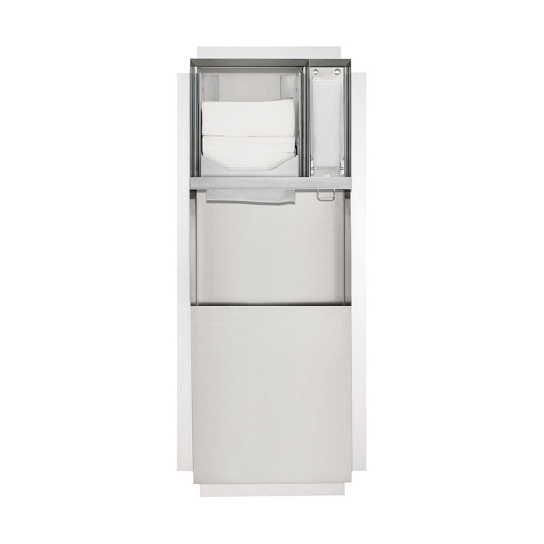• Concealed paper towel dispenser and waste bin combination