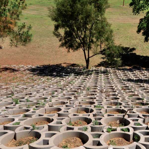 The blocks can be laid in various configurations depending on the aesthetic requirement or the condition of the soil and vegetation of the area.